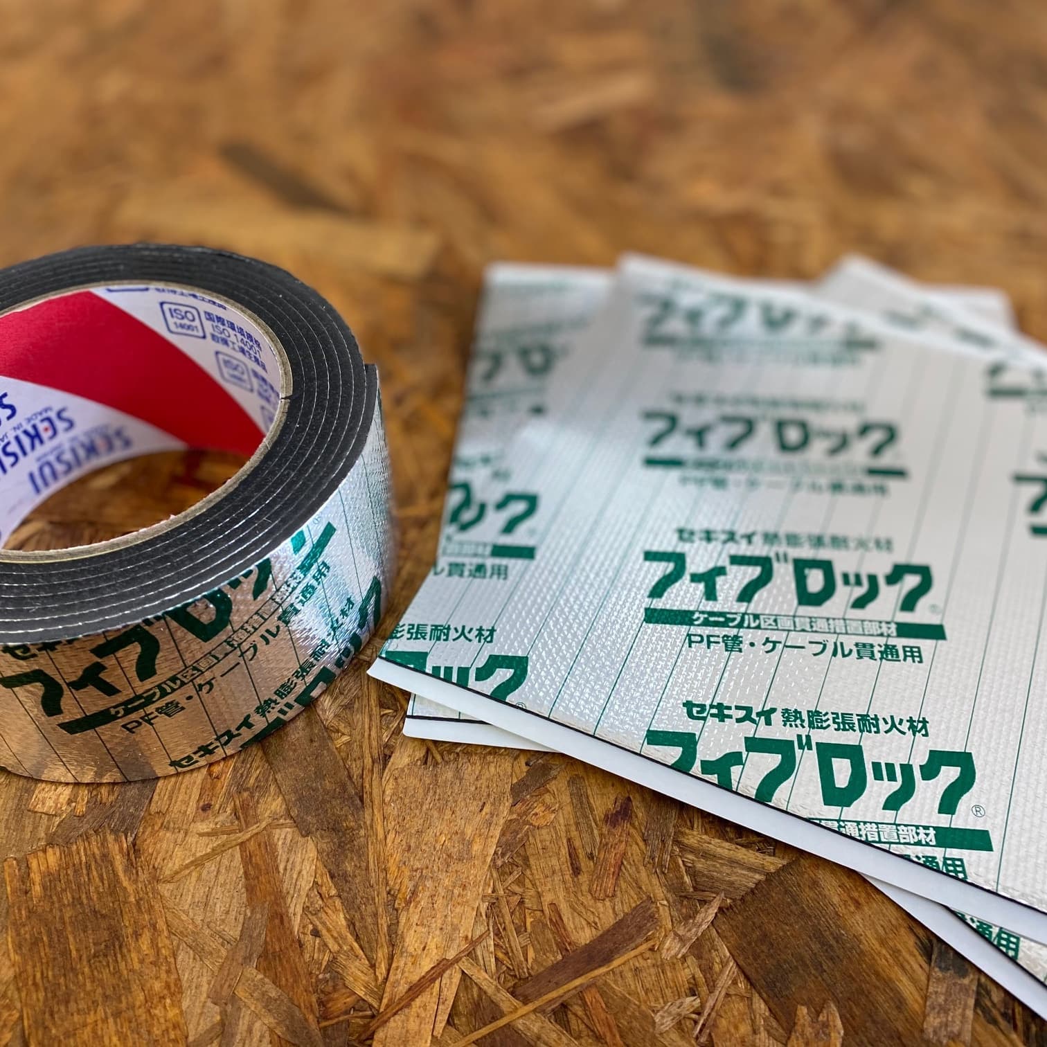柔軟で薄いシート状の耐火材を使用するので、非常に施工性が良く、片側だけで施工が完了するので作業性にも優れています。その他にも耐熱シール材を充填するだけの工法や、PF管、ケーブル以外の異種管貫通に対応する工法もございます。その他には共住区画に対応する(一財)日本消防設備安全センター性能評定工法もございます。